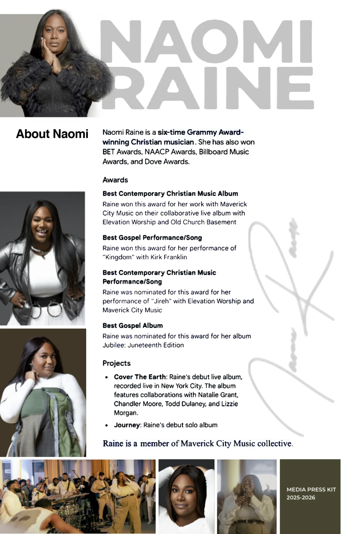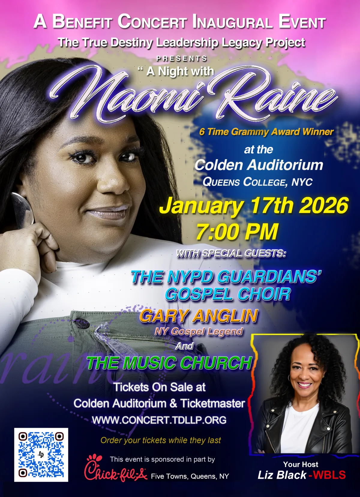 Together, we can ensure that “A Night with Naomi Raine” becomes more than a concert — it becomes a catalyst for legacy building now, as well as for years to come.